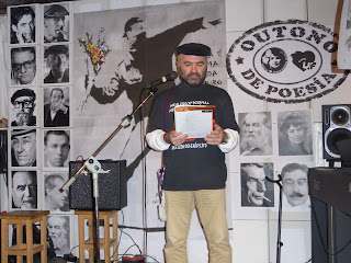 Alexandre Ínsua (Colega noso na editora "Círculo Edições" mostrando a nova revista Elipse nº 7 que se presentou esa noite dentro do acto "Círculo Poético Aberto". |